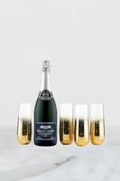 Give the gift of luminous celebrations with four stemless Chevalier champagne flutes and our crisp 2019 Ultra Brut. These striking glasses showcase a gleaming electroplated gold finish that brings an extra dose of sparkle to the celebration, while their 11.1-ounce capacity ensures perfect pours. Paired with our vibrant Blanc de Noir—rich with notes of raspberry, lychee, and biscotti—this radiant set turns every gathering into pure gold. Beautifully gift wrapped and destined to delight.